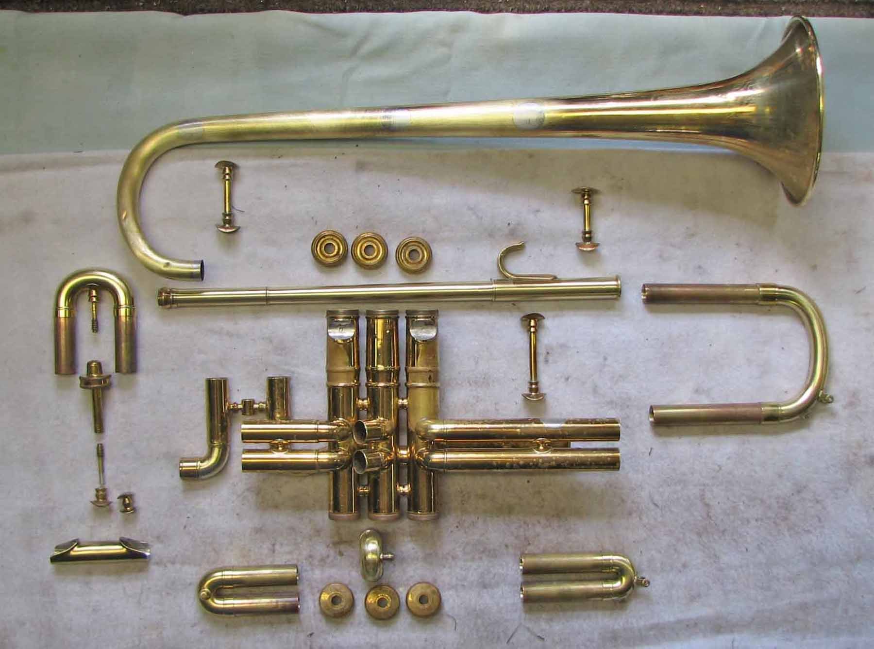 Débosselage et vernissage des cuivres : trompette, trombone, saxhorn